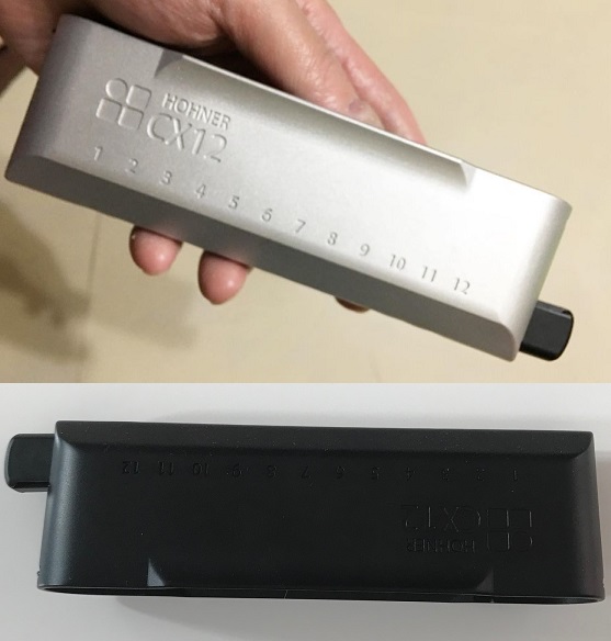 The CX 12 came initially in 5 different colors: black, gold, silver, ivory and maroon. Since 1998, only the black and gold colored ones were still sold by Hohner. In 2008 Hohner introduced the CX 12 Jazz with a new mouth piece design.