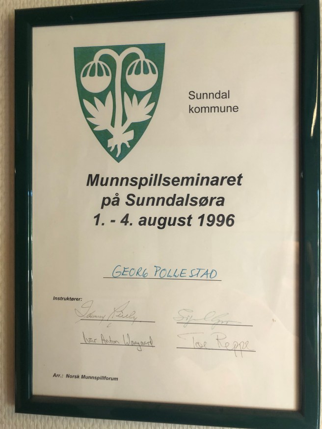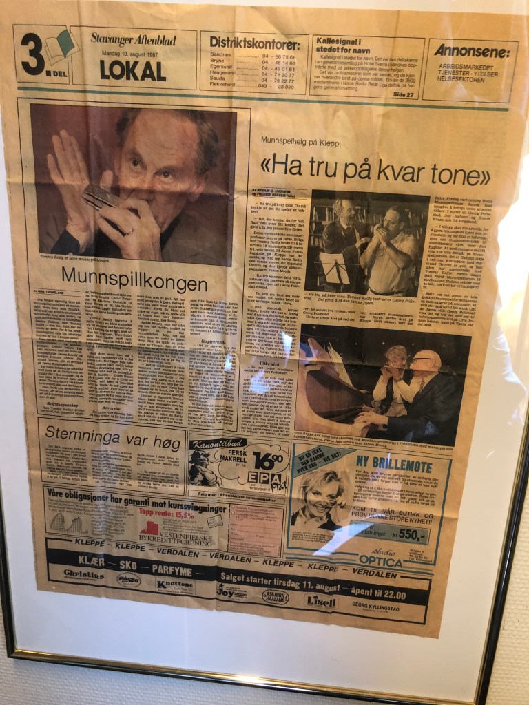 View of the entranceNewspaper article showing Tommy Reilly and Mr. PollestadDiploma for the Harmonica Seminar